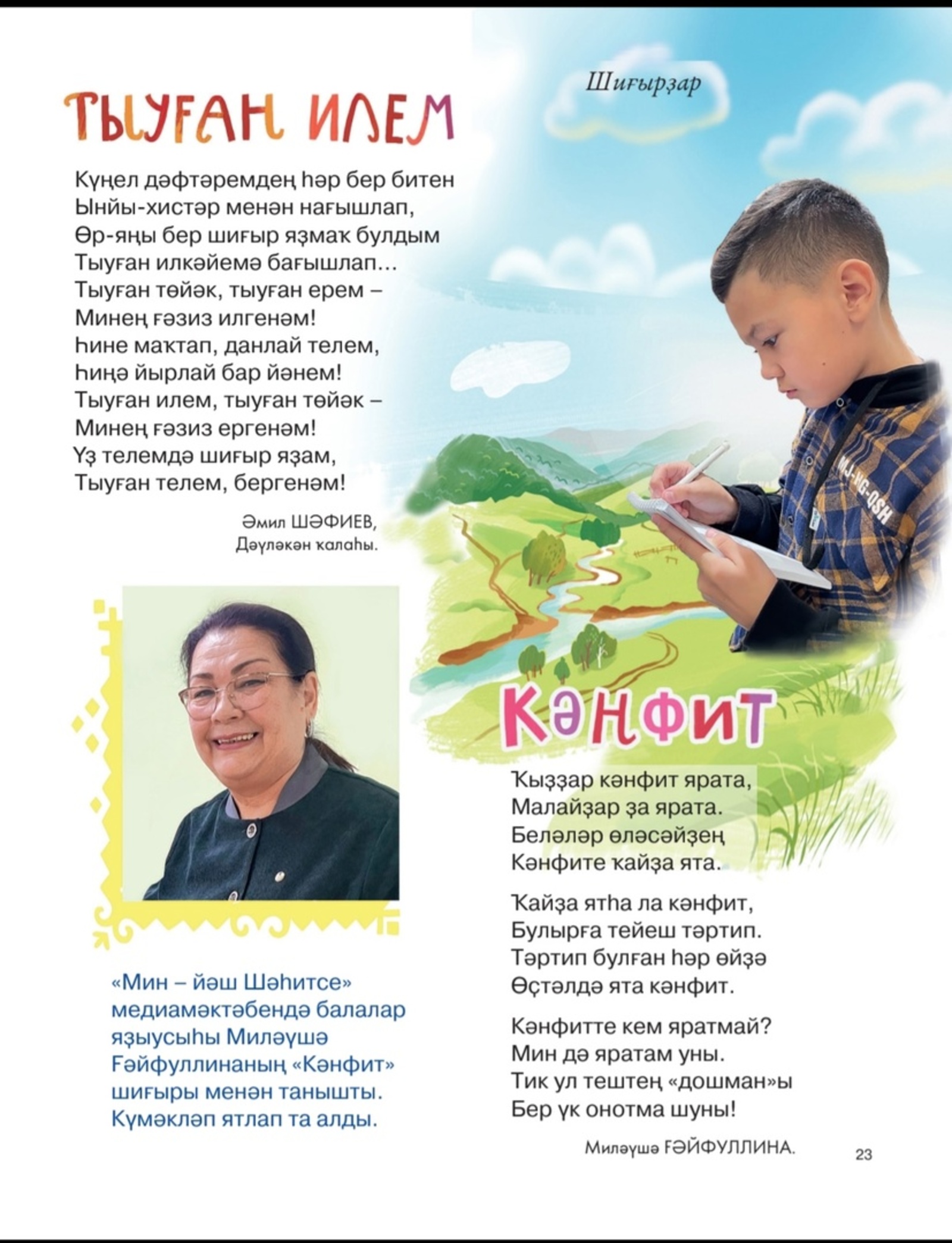 Ә бына журнал биттәрендә Миләүшә Муса ҡыҙының шиғырын шиғриәттә үҙен башлап һынап ҡараусы Әмил Шәфиевтеке менән йәнәшә бирергә булдыҡ.
