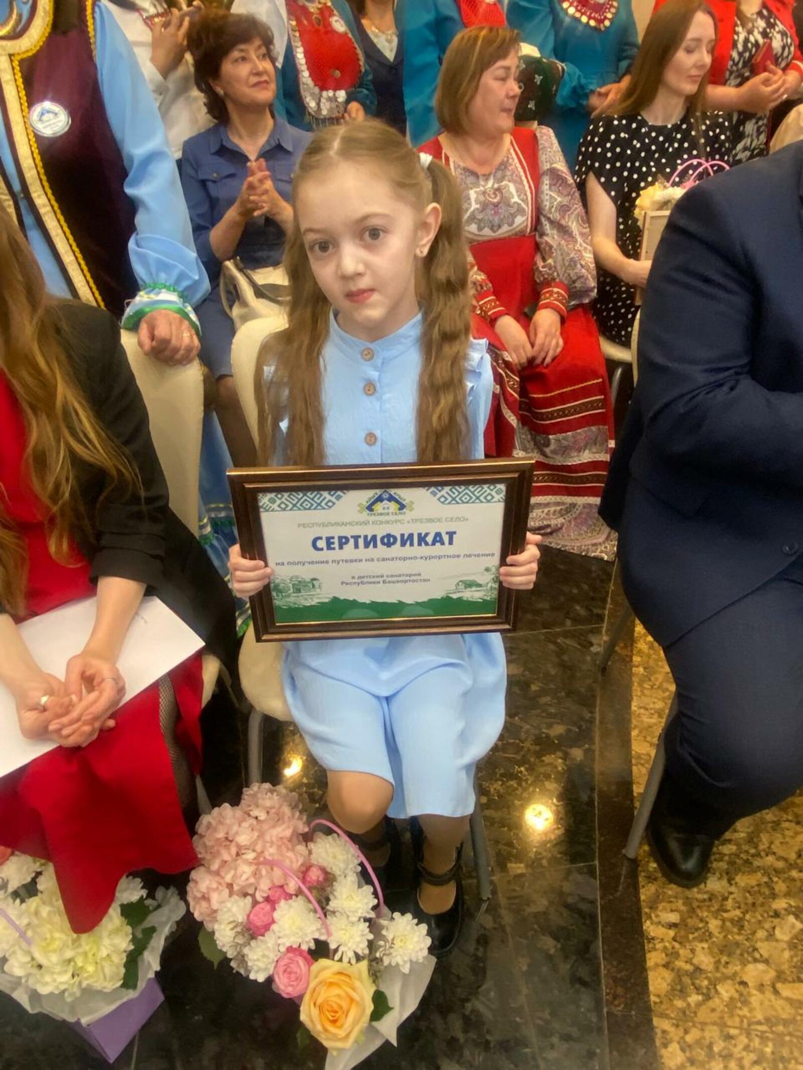 Бөтә донъя башҡорттары ҡоролтайы ойошторған "Айыҡ ауыл" конкурсына әҙерләгән видеоролигы өсөн Амелия балалар дауаханаһына сертификат менән бүләкләнде.